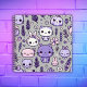 Grey background with cute purple Kawaii characters and lavender flowers on this square spiral notebook, where inside pages may be changed to suit your needs, as well as different colour spirals, etc.