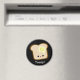 A cute magnet with a fun piece of kawaii toast and melting butter smiling on a black background above the word "Toasty" in white font.