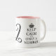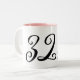Cute keep calm quote 32nd Birthday coffee mug gift. Funny Keep Calm and Carry On meme for thirty-two year old. Make your own age specific spoof with custom number. Cute typographic cups for men or women. Modern typography template with crown. Pink or custom colour inside.