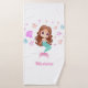 Cute mermaid bath towel featuring beautiful dark haired mermaid design and a custom name. You can personalise it with preferred name. Perfect for everyone who loves mermaids.