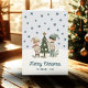Cute Kids Decorating Chistmas Tree Drawing Holiday Card. A cosy, Boho-inspired Christmas card featuring cute drawing of two children decorating the Christmas tree on a snowy hill. Soft earthy tones such as terracotta, cream, and green. Delicate snowflakes are scattered across the card, adding a touch of winter magic. The text 'Merry Christmas' is in elegant script. The overall aesthetic exudes a warm, rustic, and modern Bohemian feel, perfect for a stylish yet festive holiday look. Add your name and year on the front and your text inside the card.