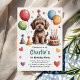 Celebrate your child’s special day with this adorable dog-themed birthday party invitation! Featuring a sweet puppy with balloons, party hats, and a birthday cake, this customisable card is perfect for animal lovers or pet-themed birthday parties. Personalise with your child’s name, party details, and RSVP information for a one-of-a-kind invite that sets the tone for a fun and festive celebration. This invitation says "1st birthday", but you can easily change it to any birthday year. Great for boys and girls, this puppy birthday invitation makes party planning easy and unforgettable!