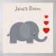 Cute kid's elephant with hearts customizable name poster