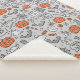 This design presents a fun and playful Halloween-themed doodle pattern, perfect for kids. The design is filled with an assortment of cute, hand-drawn Halloween icons, including smiling jack-o'-lanterns, friendly ghosts, black cats, bats, candy, and spider webs. Additional elements like witches' hats, tombstones, skulls, candles, and "Trick or Treat" signs are scattered throughout, all drawn in a simple and charming style. The pattern is set against a light grey background, with the doodles outlined in black and accented with pops of orange and white. The overall vibe is festive and lighthearted, making it ideal for Halloween celebrations with a fun and whimsical touch.