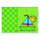 These adorable customised greeting cards for kids can be used for a variety of occasions. Kids will love this cartoon sailboat with a smiling sun on a green chequered background.