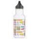 A water bottle with cute doodles of school supplies which include calculator, pencil, crayons, notebook, scissors, eraser, glue etc. Great for kids for school!