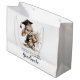 These two personalised and stylish glossy gift bags were simply ideal to carry wedding gifts wrapped in the matching gift wrapping paper. The customised text printed on the gift bags was precisely as ordered and while the photo does not quite do the gift bags justice, rest assured they look fabulous. The gift bags were securely packaged for safe transit arriving undamaged and it was a speedy turnaround from ordering to delivery. Thank you Zazzle for another 5-star transaction in every way!
