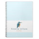 NewParkLane - Cute Personalised Notebook, featuring a beautiful native Australian bird, the Kingfisher, in different shades of teal and orange, and a soft aqua / turqoise striped pattern in the background.