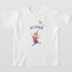 This cute and fun kid's T-shirt features a lovely watercolor illustration of a birthday boy running with a kite, alongside contemporary font in blue, both front and back. Easily change the colour of the T-shirt using the editing tool. Variations of this design available in the full collection.