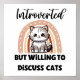 The perfect design for the shy cat enthusiast! This relatable and funny graphic features the quote "Introverted But Willing to Discuss Cats" alongside an absolutely adorable watercolor-style kitten. The cute cat sits in front of a trendy, neutral-toned boho rainbow. It’s the ideal ice-breaker for cat moms, cat dads, and any introvert who would much rather talk about their feline friends than anything else.