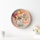 Wall clock featuring a cute kitten with festive balloons and a cupcake. Great as a birthday gift for a cat lover.