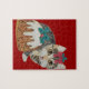 This cute little Christmas tabby kitten is wearing a very pretty red bow with a christmas holly on her head and she's looking very pleased with herself as she licks the Christmas pudding cream from her paws with her little pink tongue. Her big pussycat eyes show how much she's enjoying her special christmas treat. This little cutie really stands out against the festive red background of this christmas jigsaw puzzle and I'm sure it'll be lots of fun putting the pieces back together. I think this cute kitten puzzle will make a wonderful little gift for anyone, it's suitable for children and grown-ups alike, I think friends, family, colleagues and all cat lovers will want to be seen with there own very special christmas jigsaw during the festive holiday season. Or maybe you just want to treat yourself to a cute christmas kitten puzzle.
