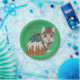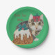 cute kitten grey tabby licking paw christmas paper plate