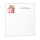 Notepad with a cute little kitten. Sitting in a teacup looking positively adorable. One little paw hangs on the brim. Hearts swirl all around. Sweet and whimsical.