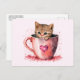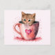 Cute Kitten in a Teacup with Hearts Postcard