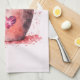 Kitchen towel with a cute little kitten. Sitting in a teacup looking positively adorable. One little paw hangs on the brim. Hearts swirl all around. Sweet and whimsical.