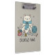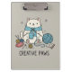 Embrace your creative side with this delightful clipboard showcasing a cute kitten passionately knitting. Surrounded by balls of yarn, knitting needles, and a painter's palette, this design is perfect for hobbyists and art lovers. The gentle gray hue of the clipboard provides a neutral backdrop for the vibrant illustration, ensuring it stands out. Ideal for journaling, creative writing, or simply keeping your important papers tidy, this accessory adds a touch of playful charm to any desk. Let this sweet kitten inspire your next creative endeavor and bring a smile to your day.