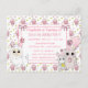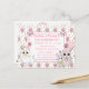 Sweet hand drawn cartoon kitty cat, mouse and llama pink cupcake and bows girl's birthday party invitations.