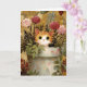 Adorable orange kitten emerging from a pottery pot amidst lush leaves and colourful flowers, creating an artistic and whimsical setting.