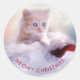 Cute Kitten Resting On a Santa Hat Meowy Christmas Classic Round Sticker