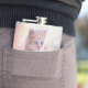 The flask itself is fine. It’s a cheap flask, obviously bought in bulk, however am prepared to overlook that. Given that it is a personalized item, I would have liked to have seen gift boxing instead of the generic packaging. Terrible printing, and/or quality. It’s a cheap, tacky vinyl. It is not cut straight and is also applied in a way that it is overhanging the bottom, causing the glue to catch on items and it will eventually roll and tear, damaging the wrap.