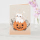 Cute Kitten Sitting On Pumpkin Pastel Halloween Card
