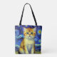 Tote Bag featuring a cute Van Gogh kitten! This little orange and white kitty poses with Starry Night. A purr-fect gift for cat lovers and Dutch art collectors!