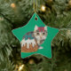 cute kitten tabby cat eating pudding at christmas ceramic tree decoration