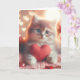 This blank card with a cute kitten holding a heart is perfect for Valentine's Day.