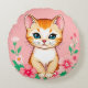 Cute Kitten with Flowers Round Cushion