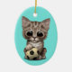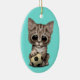 Cute Kitten With Football Soccer Ball Ceramic Ornament
