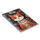 Personalised notebook. Adorable whimsical ai art with a orange kitty cat surrounded by folk art flowers in pink, orange and teal.
