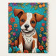 . Adorable whimsical ai art with a orange kitty cat and brown and white puppy dog surrounded by folk art flowers in pink, orange and teal.