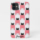 Cute iPhone 11 case featuring black and pink kittens on pink and white squires. Perfect gift for cat mama or pet lovers.