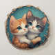 Two cute kittens embrace in a heartwarming illustrated portrait, their big blue eyes, soft fur and gentle expressions conveying friendship, affection, warmth and playful charm for kids and designs.