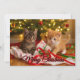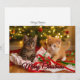 A pair of cute kittens playing with opened Christmas wrapping paper and ribbons under a brightly lit Christmas tree. You can easily personalize the text and replace the picture with your own in this Christmas card template.