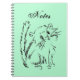 A fun colourful back to school spiral notebook featuring an original line drawing cartoon of an adorable kitty! Bright green background.
