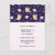 Birthday invitation postcard with an adorable pattern featuring kitty cat astronauts floating in space. Fun and whimsical.