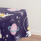 A tablecloth with an adorable pattern featuring kitty cat astronauts floating in space. Fun and whimsical.