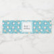 Event water bottle labels with a cute cat pattern, set on a blue background and decorated with rainbows and paw prints and more.