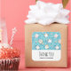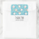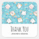 Thank You business stickers with a cute cat pattern, set on a blue background and decorated with rainbows and paw prints and more.