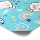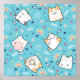 A poster with a cute cat pattern, set on a blue background and decorated with rainbows and paw prints and more.