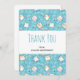 Flat thank You card with a cute cat pattern, set on a blue background and decorated with rainbows and paw prints and more.