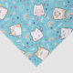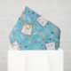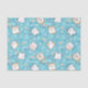 Tissue paper with a cute cat pattern, set on a blue background and decorated with rainbows and paw prints and more.