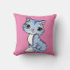 CUTE KITTY CAT PILLOW WITH PINK BACKGROUND.