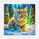 Cute Kitty Cat Playing Outside on Christmas Eve Magnet