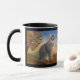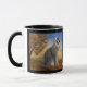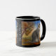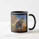 Cute mug featuring a painting of a grey kitty cat in a colorful landscape scene.