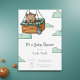 Cute and simple baby shower invitation with an illustration of a little cat in a hot air balloon basket floating away. Personalise the text with your own. Illustrated and designed by Patricia Alvarez.