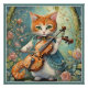 Lovely illustration of a cute cat playing the violin, pretty floral background.