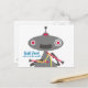Knit, purl, take over the world! Cute, funny alien or robot knitter with knitting needles and a ball of yarn in grey, cherry red, yellow and blue on business cards, promotional rack and postcards, letterhead or flyer, craft show name buttons, stickers, labels and more for your crafts business or "handmade with love" gifts and giveaways.